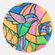 Gestaltetes Glas Kolibri in Rosa, Blau, Gold und Grün.