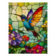 Ein atemberaubendes Buntglasfenster im Tiffany-Stil mit einem lebendigen Kolibri inmitten farbenfroher Blume. Dieses handgefertigte Werk präsentiert aufwändige Details, lebhafte Farben und klassische Eleganz und ist damit ein perfektes Herzstück für jede Zuhause oder jeden Raum.