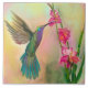 Ein irisierender Kolibri schwebt von einer Blume. Benutzen Sie diese schöne Fliese als Trivet oder als Kunstwerk.