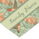 Passen Sie diesen eleganten Tischläufer mit einem Muster von Kolibris und Orangenlilien auf einem grünen Hintergrund mit Ihrem Familiennamen an.