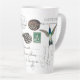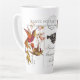 Schöne Vintage feine Kunst des Fliegens magenta und blauen Hummingbird Birds, mit Vintagen französischen Ephemera-Schriften, und Blowfish Fisch, sind auf dieser Latte-Tasse. Vintage-Bilder und Ephemera sind öffentlich zugänglich, da abgelaufene Urheberrechte.