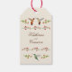 Hübsche Hochzeitsgeschenketiketten mit einer handbemalten Grenze von nordamerikanischen Kolibris und Blumenelementen auf cremebeige Hintergrund, um die Namen der Braut und des Bräutigams zu begleiten. Fügen Sie auf der Rückseite Ihren eigenen Text hinzu oder löschen Sie ihn für eine handgeschriebene Nachricht.