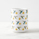 Niedliche Tasse mit einem Muster von großblättrigen Kolibris und einem breiten Schwanz-Kolibris mit Sternschmuck.