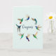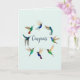 Diese Gratulationskarte für Liebhaber von Kolibris enthält verschiedene tropische Kolibris wie Velvet-lila Koronettenschwindelvögel, Weißhalskakobin, Golden-Schwanz-Saphir, Fiery-throated, Mango und Gould's Jewelfront Hummingbirds. Bilder von originalen Aquarellbildern von Christiane Dobbins.