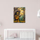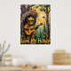 Dieses bezaubernde Bild zeigt einen Bären, einen wahren Walddarsteller mit Feuerwehrhelm und Sonnenbrille, tief eingebettet in ein akustisches Gitarrenspiel. Er ist eingebettet in ein großes Vogelnest, umgeben von Bienen, Wildblumen und einem Glas Honig. Das lebendige, strukturierte Pinsel schafft eine lebendige und aufregende Atmosphäre und vermittelt die "Liebe My Honey"-Atmosphäre dieser einzigartigen Performance.