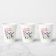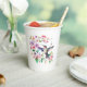 Dieses Design zeichnet sich durch Aquarellvögel und einen tropischen Blumenkranz mit grünen Blätter Lavendel lila und rosa Blume aus.