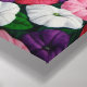 Schwänzende Kolibris fliegen, Nektar aus den Blume schlängeln in einem bunten Frühlingstraum, der mit lila, roten, weißen und rosa Fuchsias und Petunien gefüllt ist. Realistische Kunstwerke, die aus einer Ölmalerei des Künstlers Crista S. Forest entstanden sind.