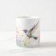 Ein farbenfroher Hummingbird, der frei zwischen den Blume fliegt. Stilstifte und Aquarell.