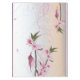 Dieses Design zeigt hellviolette Blume aus Hindenholz mit Bordeaux-Zentren auf pastellfarbenem Hintergrund, ein Hummingbird sitzt auf einem Ast.
