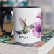 Niedlicher Kolibri mit violetten Blumen auf einer zweifarbigen Kaffee-Tasse, die Sie individuell gestalten können. Ändern Sie den Namen und Zweck der Tasse und geben Sie als Geschenk an alle Kolibris Liebhaber und Vogelbeobachter.
