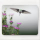 Ein Kolibri nähert sich einer Blume von oben. Ungewöhnliche Perspektive.
