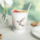 Ein farbenfroher Hummingbird, der frei zwischen den Blume fliegt. Stilstifte und Aquarell.