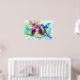 Farbenfrohe Digitalmalerei eines Kolibri, der kurz davor ist, auf einer großen, lebendigen Blume zu knabbern