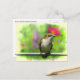 Auf dieser Postkarte befindet sich ein junger, rubingewurzelter Kolibri, der noch nicht die rubinfarbene Kehle entwickelt hat. Er sitzt auf einem Bar aus Metall, bereit, von den ihn umgebenden Blume in den Nektar zu tauchen. Der Hintergrund ist eine sanfte, hübsche Farbpalette aus Rosa, Rot, Gold, Gelb und Grün.