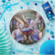Ein lebendiger Kolibris, der in einer Iris-Blüte badet und in einem sonnenbeleuchteten Garten Wassertröpfchen schüttet