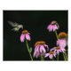 Ein süßer Kolibri schließt sich einer Biene an, die an lila Blumenblüten lebt. Der schattige Hintergrund macht das Bild zum Pop.