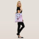 Personalisieren Sie diese einzigartige "Eine von einer Art" Hummingbird und Blume Tote Bag! Es verfügt über einen großen Hummingbird Sipping Nectar aus schönen Pink & Purple Blumen auf einem rosa und blauen Hintergrund auf der Vorderseite ... und Rosa und Lila Blumen auf der Rückseite! Originelle Kunstmalerei des Künstlers Kerry Miller.