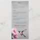Genießen Sie ein elegantes Menü für Ihren Empfang mit dem "Grey Hummingbird" und dem "Hibiskus Wedding Menu". Die Speisekarte bietet eine hellrosa Hibiskus-Blume mit einem rubingebeutelten Kolibri. Personalisieren Sie mit Ihren Menüoptionen, Braun- und Bräutigamen und Hochzeitstag. Zusätzliche Hochzeitsarbeit mit diesem Design verfügbar.