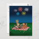 Diese niedliche, humorvolle 4. Juli-Karte eignet sich hervorragend, wenn Sie Liebe haben, besondere und niedliche Grüße für den Geburtstag der USA zu verschicken. Die Grußkarte vom 4. Juli zeigt ein paar Freunde auf ihrem Picknickdecke, die das 4. juli Feuerwerk am Himmel genießen. Dieses Design wäre auch ein perfektes Design, um einen 4. Juli Gruß an ein Kind zu senden, da es niedliche kleine Tiere, die Maus, den Hasen, den Igel, das Eichhörnchen und den Vogel illustriert.