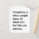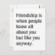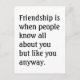 "Freundschaft ist, wenn die Leute alles über dich wissen, aber wie du sowieso." Humorvoll und ganz wahr!