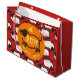Humorische und cool zeichnend Abbildung eines Schweins in einen orangen Kreis mit anpassbaren Texten (großes Jahr und Jahr des Schweins + Chinesisches Ideogramm in blassgelb) als Hintergrund gibt es humorvolle Muster mit kleinen Schweinen. Design auf große Geschenktasche. Passende Grußkarte, Postkarte, Aufkleber und mehr..; Perfekt für Chinesisch Neujahr oder Geburtstag (Leute geboren im Schweinejahr). — "Das Schwein (豬) ist das zwölfte und letzte Zeichen der Irdischen Zweige (亥). Im kontinuierlichen Sexagenenzyklus entspricht jedes zwölfte Jahr Hai und wird gemeinhin als "Jahr des Schweins" (豬 年) bezeichnet. Es gibt fünf Arten von Schweinen, die nach den chinesischen Elementen benannt sind. In der Reihenfolge sind sie: Metall, Wasser, Holz, Feuer und Erde. Im japanischen Zodiac und im tibetischen Zodiac wird das Schwein durch das Schwein ersetzt[1]. Im Dai-Zodiac wird das Schwein durch den Elefanten ersetzt. Im Zodiac Gurung wird das Schwein durch das Hirsch ersetzt. (..) Man kann sagen, dass Personen, die innerhalb dieser Zeitbereiche geboren sind, im "Jahr des Schweins" geboren waren, und dabei auch das folgende Elementarzeichen tragen: 10. Februar 1923 - 29. Januar 1924 = Wasserschwein, 4. Februar 1935 - 23. Januar 1936 = Holzschwein, 2. Januar 19 47 - 9. Februar 1948 = Feuerschwein, 8. Februar 1959 - 27. Januar 1960 = Erdschweine, 27. Januar 1971 - 14. Februar 1972 = Metallschwein, 13. Februar 1983 - 1. Februar 1984 = Wasserschwein 31. Januar 1995 - 18. Februar 1996 = Holzschwein, 18. Februar 2007 - 6. Februar 2008 = Waldschweine, 5. Februar 2019 - 24. Januar 2020 = Erdschweine, 23. Januar 2031 - 1 20 032 = Metal Pig (...)" Wikipedia