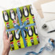 Großartige Verpackungspapier bestechen durch größeres Interesse und lassen die Fantasie darüber wecken, welche Schätze sich im Paket befinden könnten. Diese Geschenkverpackung ist eine der, die zu solchen Spekulationen und Aufregungen anregt. Auf einem amorphen Hintergrund von chartreuse (Kalkgrün) legt ein Wiederholmuster von IconDoIt's originales digitales Gemälde eines sonderbaren, albernen Pinguins in einer Weihnachtsmannmütze & Krawatte.