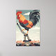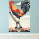 A bold, funny, and unmistakably French Canvas Art piece — retro style, Parisian chaos, and a rooster with absolutely no respect for structural engineering.