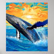 Dive into the powerful beauty of this incredible digital painting, capturing a humpback whale soaring from the deep, vibrant blue waves. Set against a fiery orange and gold sunset, the artwork evokes a feeling of wild freedom and majestic grace. The striking contrast between the whale's sleek, striped form and the dramatic sky creates an emotional and unforgettable scene. This unique design was initially crafted using advanced AI technology and then meticulously enhanced by a skilled artist to ensure unparalleled uniqueness, creativity, and artistic depth. The result is a stunning, high-quality piece that perfectly blends modern innovation with classical artistry. It’s ideal for ocean lovers, wildlife enthusiasts, and anyone seeking a statement piece for their themes. Embrace the spirit of the sea and the joy of owning truly distinctive art. Place your order today and bring this breathtaking moment into your style!