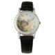 Uhr, Klassische Damenuhr mit schwarzen Lederarmband