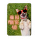 Der Fun Meilenstein Geburtstagsmagnet zeichnet sich durch das Foto aus, Corgi-Hund mit Sonnenbrille und "Ha Ha You're 40" zu lachen