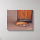 Hunde an der Erholung Nature Foto drucken und Geschenke zeigen ein wunderschönes Foto eines Hundes, der vor einer Schlammhütte mit einer Orangentür in Afrika schlief und am Nachmittag von Kurt Keller auf einer afrikanischen Safari aufgenommen wurde. Wer Tiere, Hunde, Naturfotografie und Welpenliebhaber Liebe, wird dieses friedliche Schlafpochfoto schätzen. Bring heute Zuhause einen Welpen.