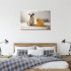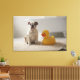 Hund auf Matte mit Kunststoffente Leinwanddruck