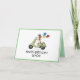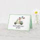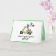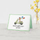 Niedlicher illustrierter Hund auf einer Vespa mit Ballons. Personalisieren Sie mit Ihrem eigenen Text auf die Vorderseite.