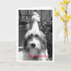 Maisie in schwarzem n-Weiß, mit Partyhut und bereiten zum Party vor.