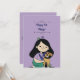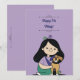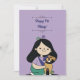 Diese Einladung zum Geburtstag zeigt eine Darstellung eines jungen Mädchens, das einen niedlichen braunen Hund umarmt. Das ist eine großartige Geburtstagskarte zum Hundegeburtstag.