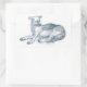 Hund. Bleistift zeichnend. Rechteckiger Aufkleber