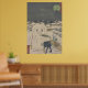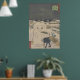 Hirokages ukiyo-e-print "Comic-Vorfälle an berühmten Orten in Edo, Nr. 22" zeigt einen spielerischen Hund, der einem Arbeiter das Essen aus einem Schnee Daruma gestohlen hat. Ein lebendiges japanisches Kunstwerk aus dem 19. Jahrhundert, perfekt für Poster, Tasse und mehr.