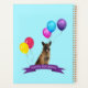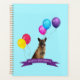 Ein niedliches Foto deutscher Schäferhund, der "Happy Birthday" und Ballons im Hintergrund wünscht