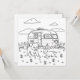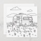 Niedliche Farbseite mit einem Camping-Thema. Ein niedlicher Hund und ein sonniges Kaninchen spielen im Hof vor einem RV-Camper.