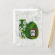 Niedliche Hundsmarine mit grüner Blumenform, grün ovalem und strukturiertem weißem Hintergrund.