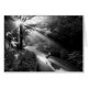 Hund und Schatten in der Morgensonne, schwarz-weiß