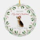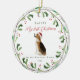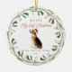 Dieser süße Hundeschmuck enthält "meine ersten Weihnachten in meiner ewigen Zuhause" Typografie mit hübschem roten Schrift. Der Name Ihres Haustieres steht an der Spitze des Designs und ist umgeben von einem festlichen botanischen Kranz und Beeren. Das Ornament umfasst einen niedlichen Beagle illustrierten Hund in der Mitte. Ein wunderschönes Geschenk für alle vier Eltern!
