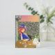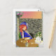 Hund & Lady im Café bei Sonnenuntergang Postkarte