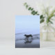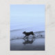 Ein Foto eines Hundes, der bei Sonnenuntergang rückwärts und vorwärts am Strand läuft.