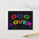 Die Wörter "DOG LOVER" in farbiger Schrift über einer Liste von Hunden Rassen in farbenfrohen Schriftart auf einem schwarzen Hintergrund. Finden Sie Ihre Lieblingshundrasse in der Liste, die Poodles, Terrier, Labrador Retrievers, Chihuahuas und viele, viele weitere Hunde umfasst. Ein tolles Geschenk für Hundefreunde!
