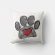 Dog Pfow Druck und Herz Wasserfarbe in rot, schwarz und grau. Kissen für Zuhause und Unternehmen nach Maß. Geschenkidee für Hundefreunde.