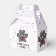 Dog Pfow Druck und Herz Wasserfarbe in rot, schwarz und grau. Paint Spritzer Hintergrund. Kästchen für benutzerdefinierte Gefälligkeiten. Text bearbeiten, um ihn anzupassen. Hunde Party Dekor Idee.