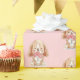 Welffarbener Hund mit rosa Blume auf rosafarbenem Hintergrund. Die Hintergrundfarbe kann geändert werden.
