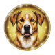Eine lebendige Abbildung eines Hundes mit einem strahlenden goldenen Hintergrund und schönen Glitzern, die Wärme, Eleganz und Fröhlichkeit vermitteln. Ideal für Feiern, Liebe und Begleitung.