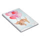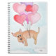 Hund schwebt mit Herzballons Notizblock